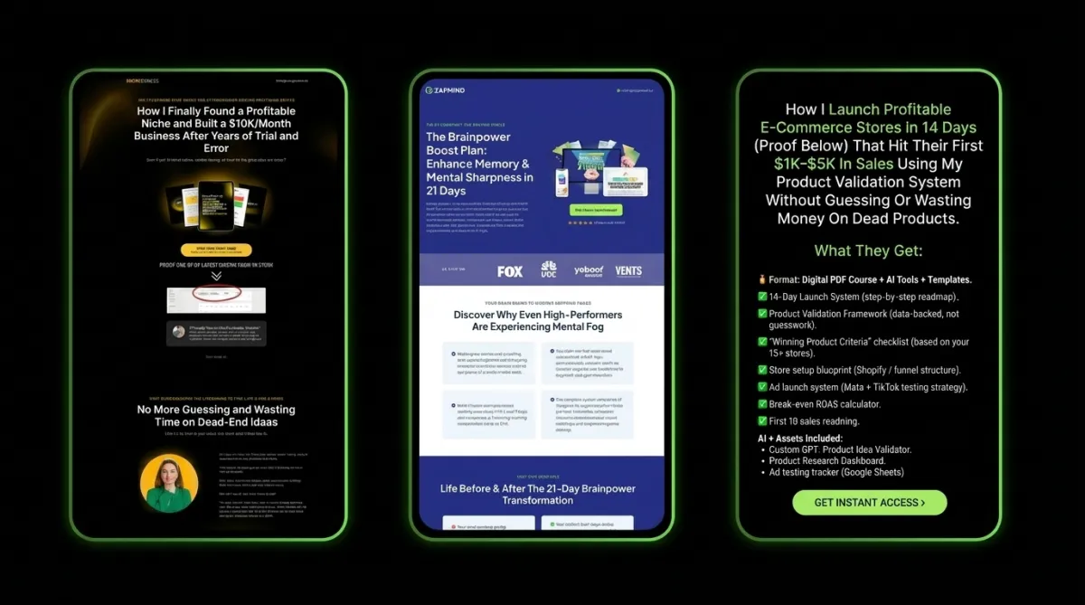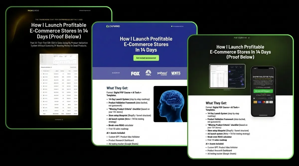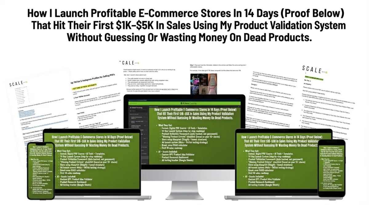 My step-by-step PDF tutorial, over-the-shoulder training shows you how to launch, validate, and scale profitable eCommerce stores — from your first sale to consistent daily revenue.